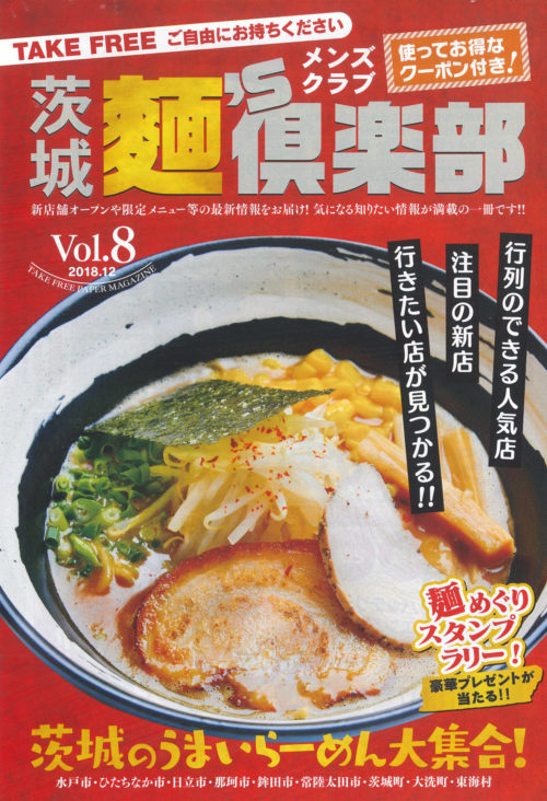 平成30年12月1日に発行された雑誌「茨城麺`s倶楽部」に情熱食堂ひたちなか店が掲載されています。