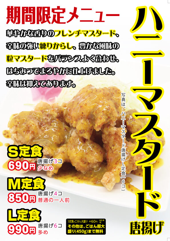 唐揚げの仲間に「ハニーマスタード」が登場しました。
