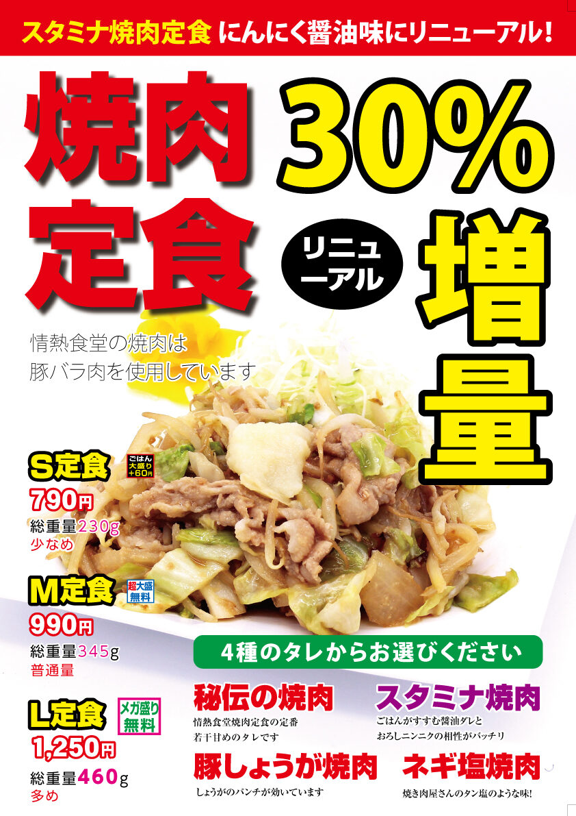 情熱食堂で提供するからには大盛り無料、さらに無料で超大盛りまでできます。