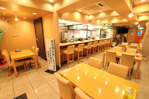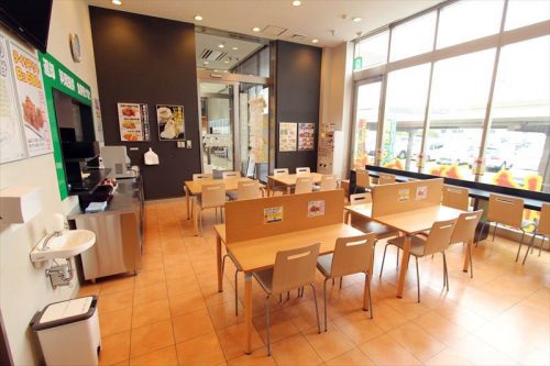 全面ガラス張りの開放的な店内で、4人掛けテーブルも用意しゆったりお食事できます。