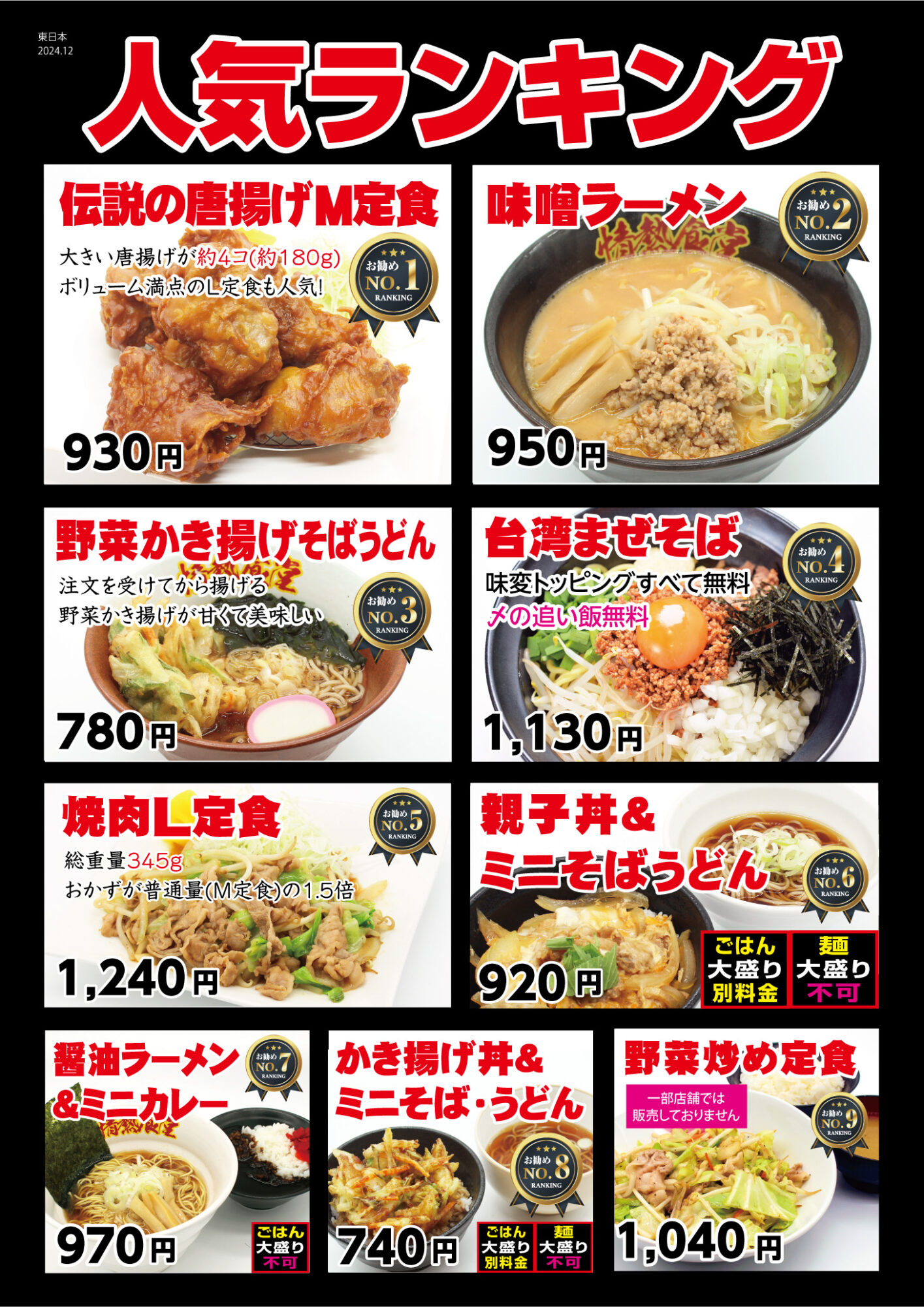 情熱食堂の人気メニュー